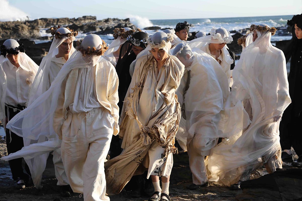 本コレクションは、2021年3月に国立新美術館にて発表したインスタレーション『合掌』、2021年12月に長崎県美術館にて行ったインスタレーションの続きとなるもので、デザイナーの山縣が幼少期を過ごした長崎の地からインスピレーションを得て、写真家の野村佐紀子氏、濱田祐史氏、フォトジャーナリストの大石一男氏とともにwrittenafterwards,written byの衣服を纏った青年たちの写真、映像作品を制作いたしました。