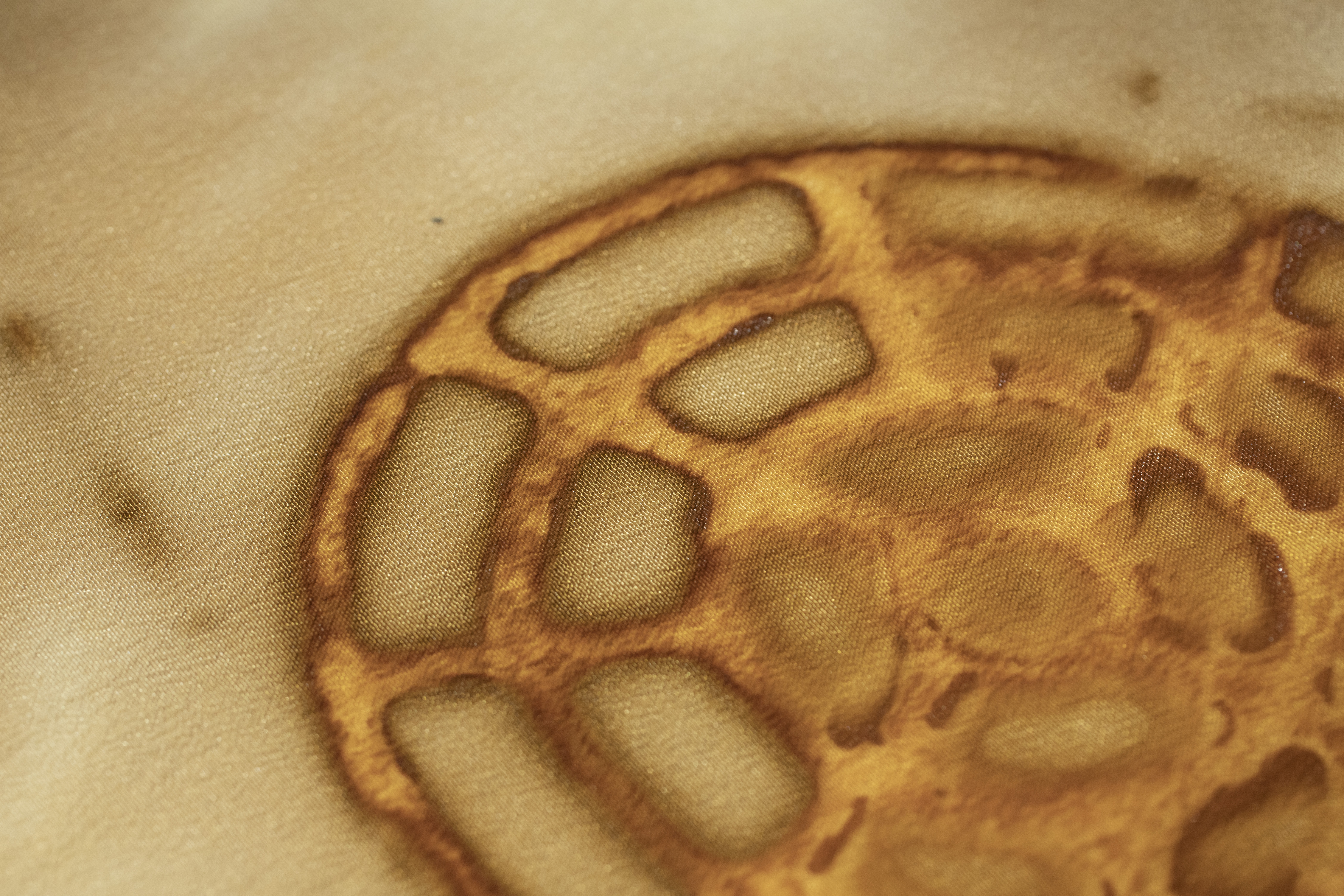 The decaying object breathes new life into the cloth. The expression created by the passage of time reminds us of the power and beauty of nature.
